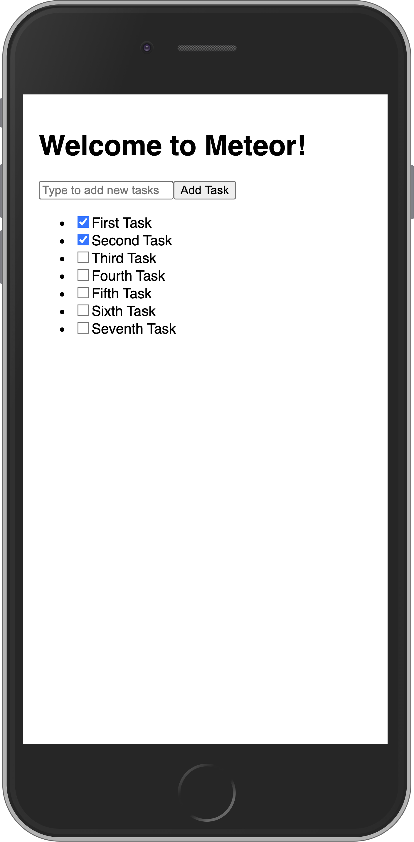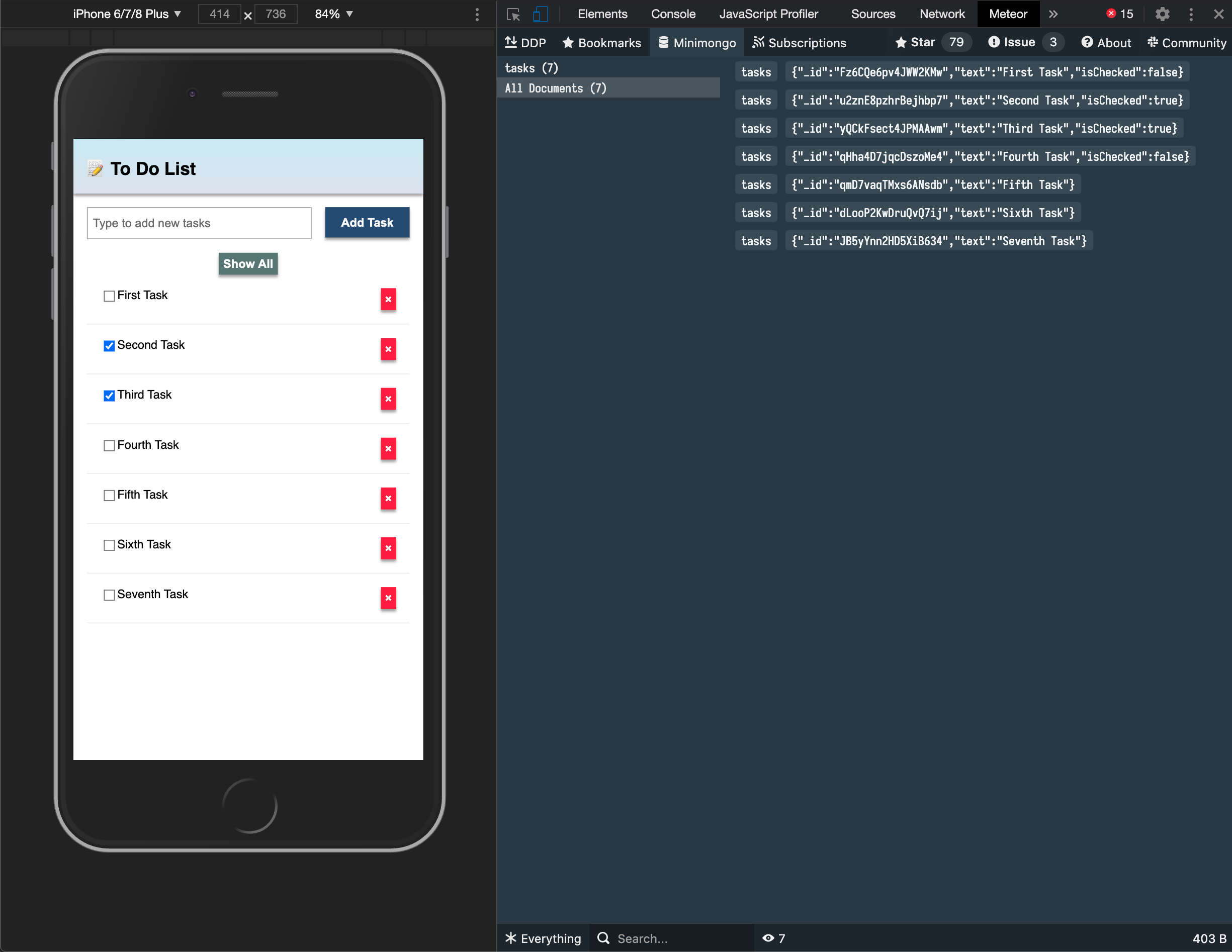 });So you are importing the TasksCollection and adding a few tasks to it iterating over an array of strings and for each string calling a function to insert this string as our text field in our task document.
