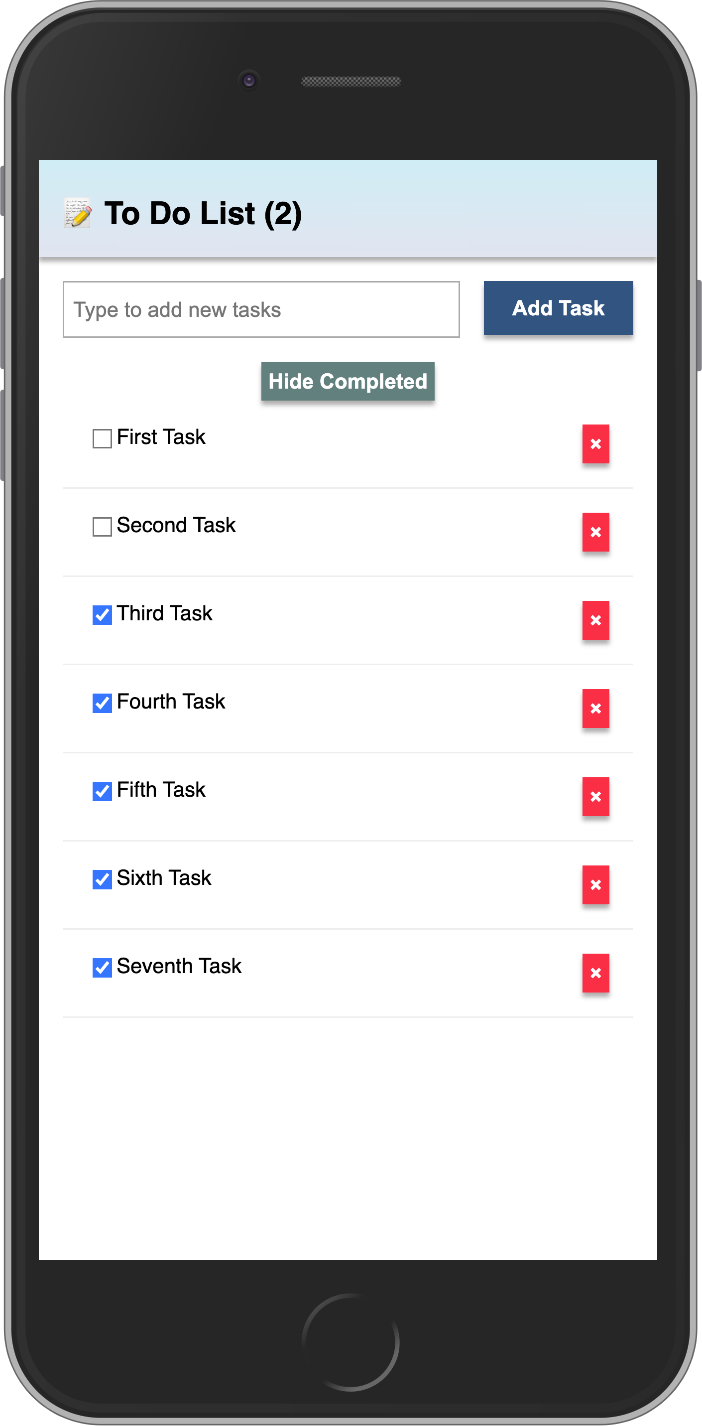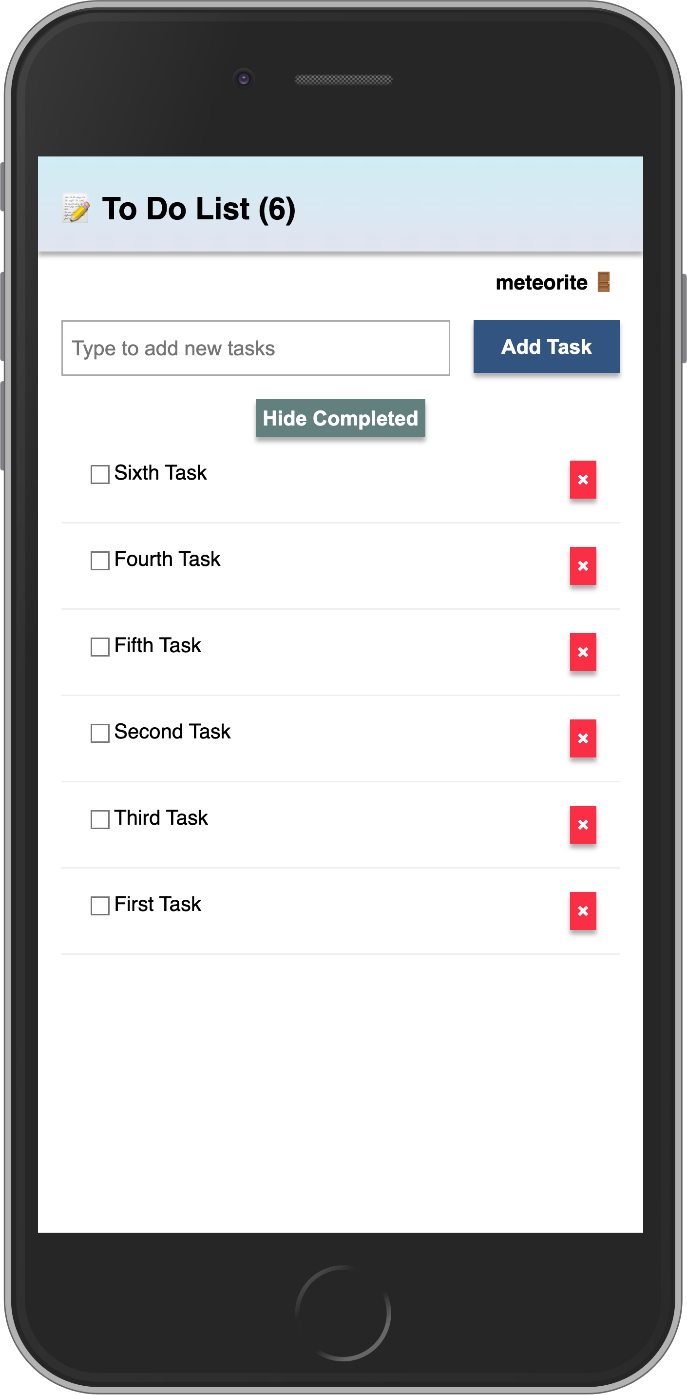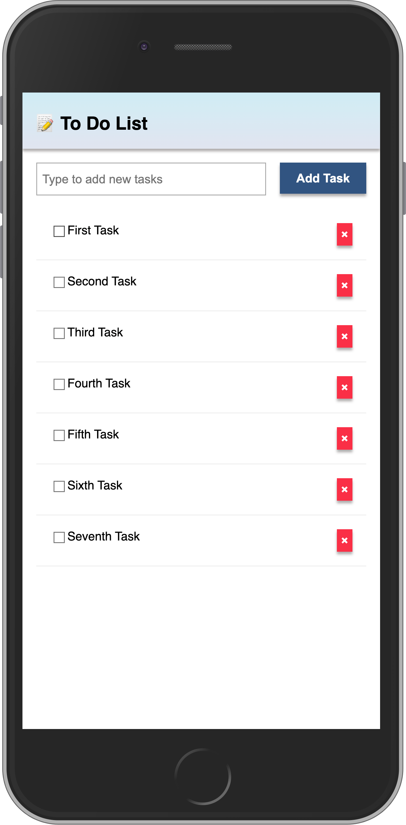See below that you will use a .map function from the Array object to iterate over your sample tasks.